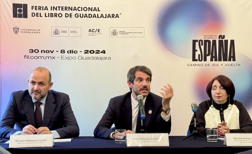 Durante la conferencia Ernest Urtasun, ministro de Cultura de España, resaltó tres puntos que abarcara el programa: «Memoria y el exilio», el cual destaca, recuerda y agradece a México que ciudadanos, escritores e intelectuales fueran acogidos en México durante la Guerra Civil Española; «Cruces de caminos», en esta punto la literatura dialogará con ciencia, música, cine, artes visuales con exposiciones y por primera vez en la historia de la FIL Guadalajara un festival gastronómico, aprovechando la ventana al mundo que la Feria ofrece a sus invitados; finalmente «El pabellón España», un espacio híbrido construido para evocar un entorno vegetal donde los asistentes tengan un lugar de descanso y ¿por qué no? contemplativo, el cual albergará la plaza central, dos auditorios, librería y una biblioteca, la cual será donada al finalizar el evento a una biblioteca pública. En esta edición España nos abraza con «Todo lo que hace la literatura un gran y único viaje que necesita de mapas, pero, al mismo tiempo, carece de fronteras».