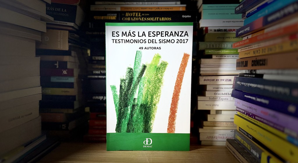 El sismo ocurrido el 19 de septiembre de 2017 en la Ciudad de México fue un evento que dejó una marca profunda en la sociedad mexicana; se escribió sobre el tema pero les faltaba algo, faltaba un entendimiento más profundo del impacto de dicho fenómeno natural y como los ciudadanos lo vivieron. Fue así como la Documentación y Estudios de Mujeres A.C. [DEMAC] publica el libro Es más la esperanza. Testimonios del sismo 2017, una obra con 49 relatos escritos por mujeres, mujeres que vieron en este trabajo una forma de expresar el dolor, la denuncia y la unión de la sociedad para ayudar; mujeres que vivieron en carne propia los derrumbes, el deceso y rescate de personas, la resiliencia de la sociedad, así como la organización para ayudar a los damnificados.