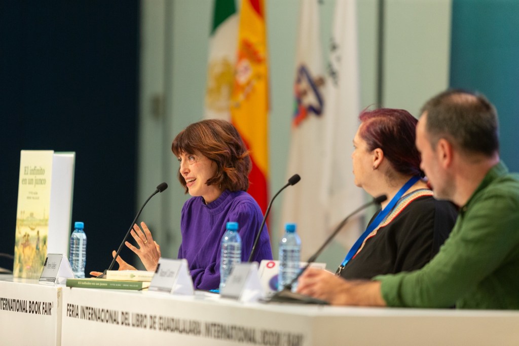 Durante la charla “Dibujar el mundo, la invención de los libros”, Irene Vallejo recibió una impresionante ovación por parte del público asistente en el auditorio Juan Rulfo de la Feria Internacional del Libro de Guadalajara. La escritora española habló del proceso creativo para realizar la versión gráfica de su obra El infinito en un junco, llevada al cómic por Tylo Alba. El evento estuvo moderado por la autora Raquel Castro, quien agradeció a los participantes e inmediatamente comenzó con las preguntas.