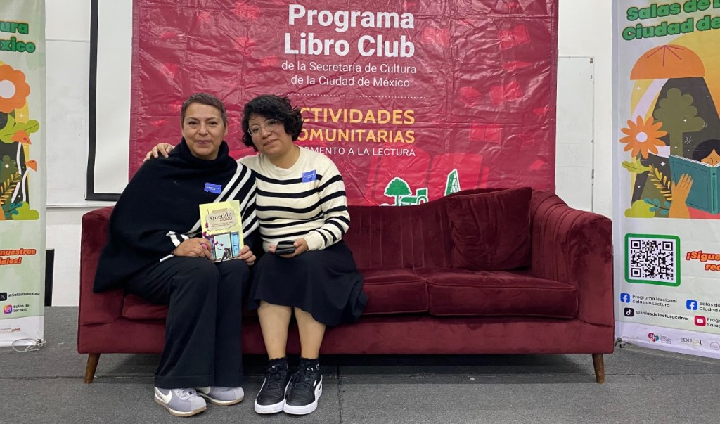 Al conversatorio asistieron Anilú Závala y María de los Ángeles Sánchez quienes compartieron su experiencia en círculos de lectura y proyectos de publicación autogestiva. En su participación, María de los Ángeles detalló que durante la pandemia encontró espacios de lectura donde se leían obras escritas por mujeres. “La lectura ya no es ese momento en el que estoy sola leyendo, ahora es una manera de conectar con la otra persona y más ahora que estamos en un contexto de mucha violencia”.